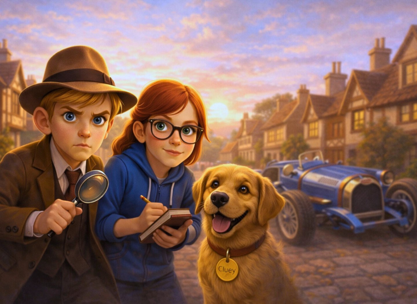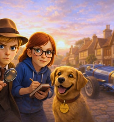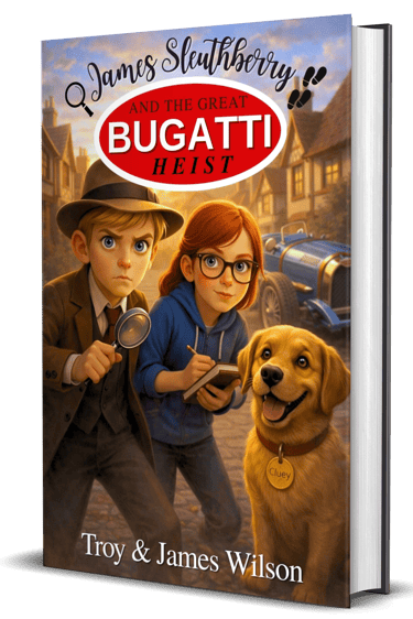 When the legendary Bugatti vanishes, James Sleuthberry is pulled into a mystery bigger—and far more dangerous—than anything he’s faced before. With his sharp-witted friend Penny, loyal dog Cluey, and a trail of curious clues, James races to outsmart a gang of bungling criminals before the truth disappears for good.